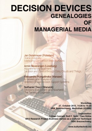 The presentations have been selected to cover different time frames as well as different technical and conceptual layers of the relevant media infrastructures – from databases via data models and algorithms to interfaces and visualisations. In combination, these perspectives will provide a significant contribution to the history of managerial media and shed light on the question why some of these trajectories are currently gaining in relevance.